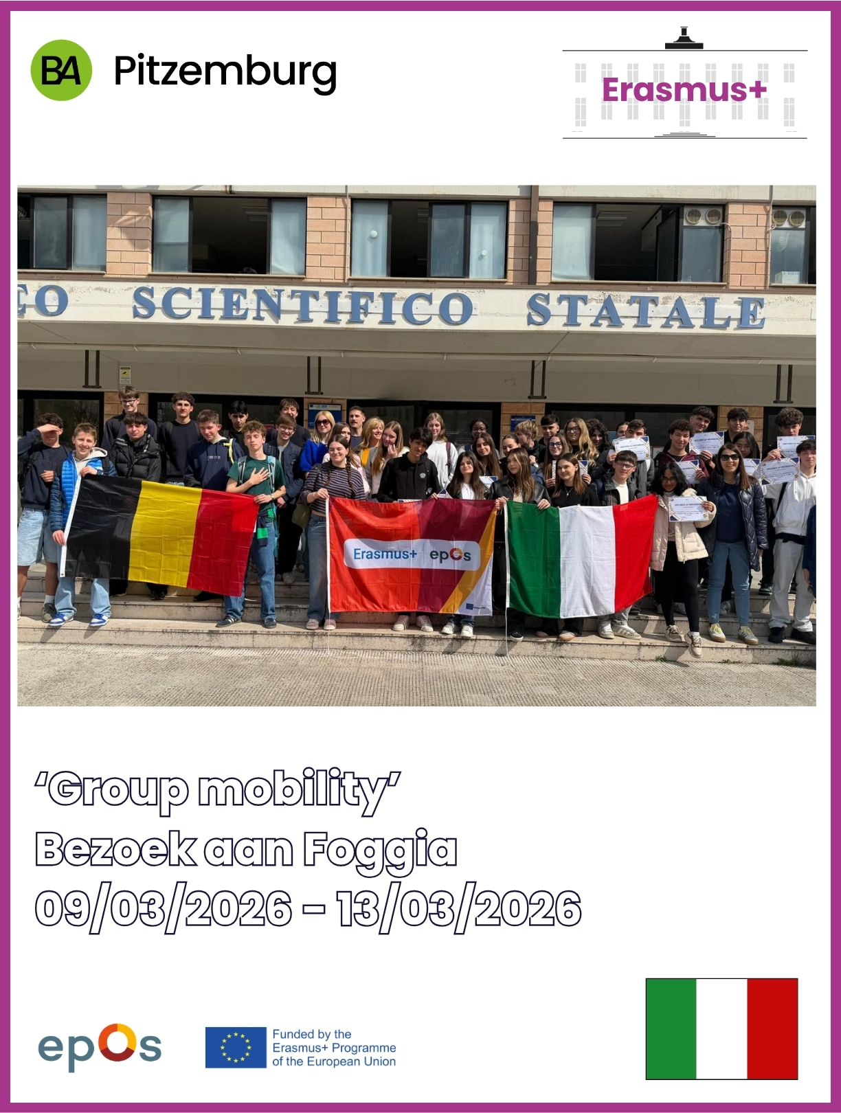 GO! Busleyden Atheneum Pitzemburg heeft eind 2023 een Erasmus+ accreditatie behaald. De volgende schooljaren kunnen het personeel en de leerlingen zich verder ontwikkelen in de volgende sleuteldoelstellingen: