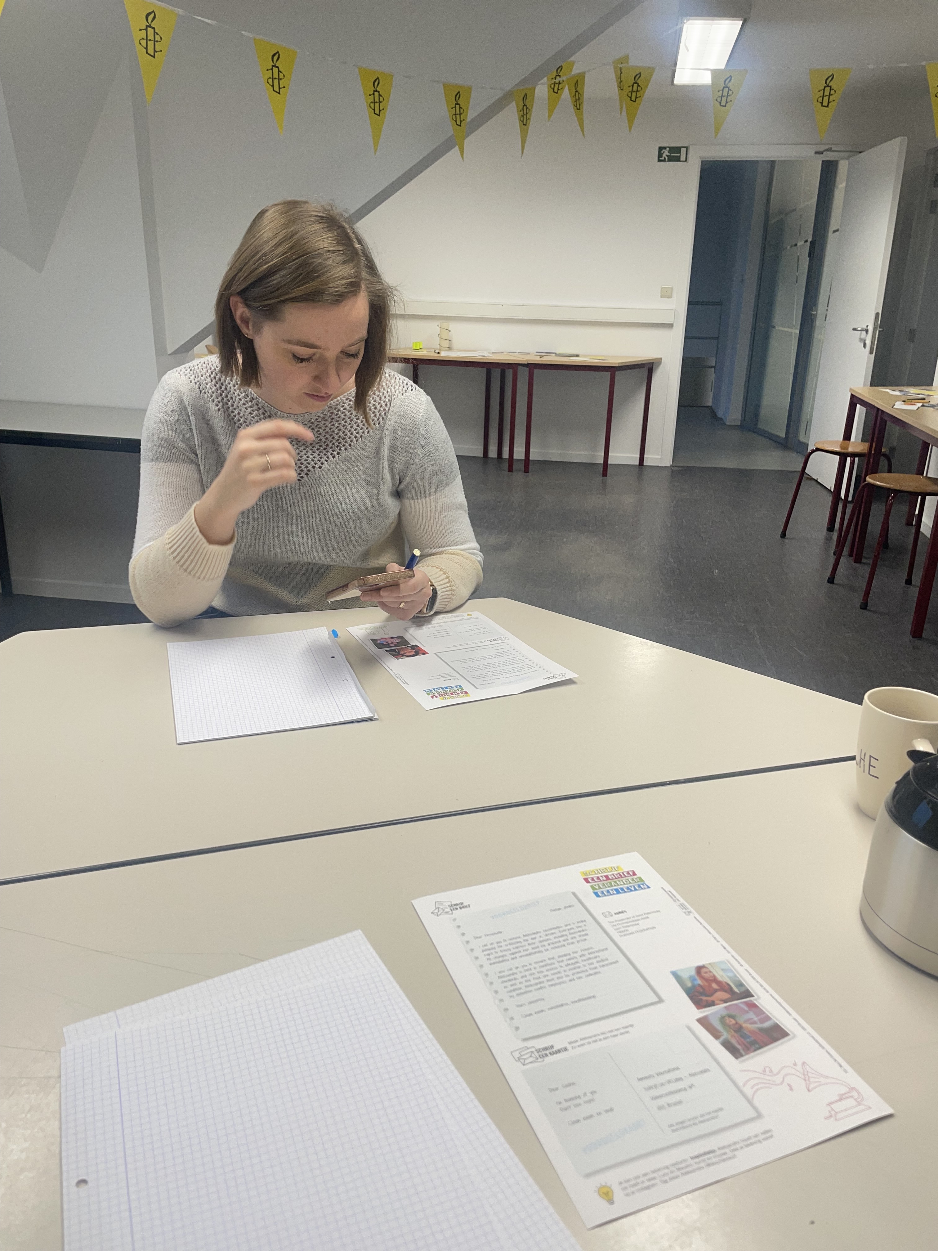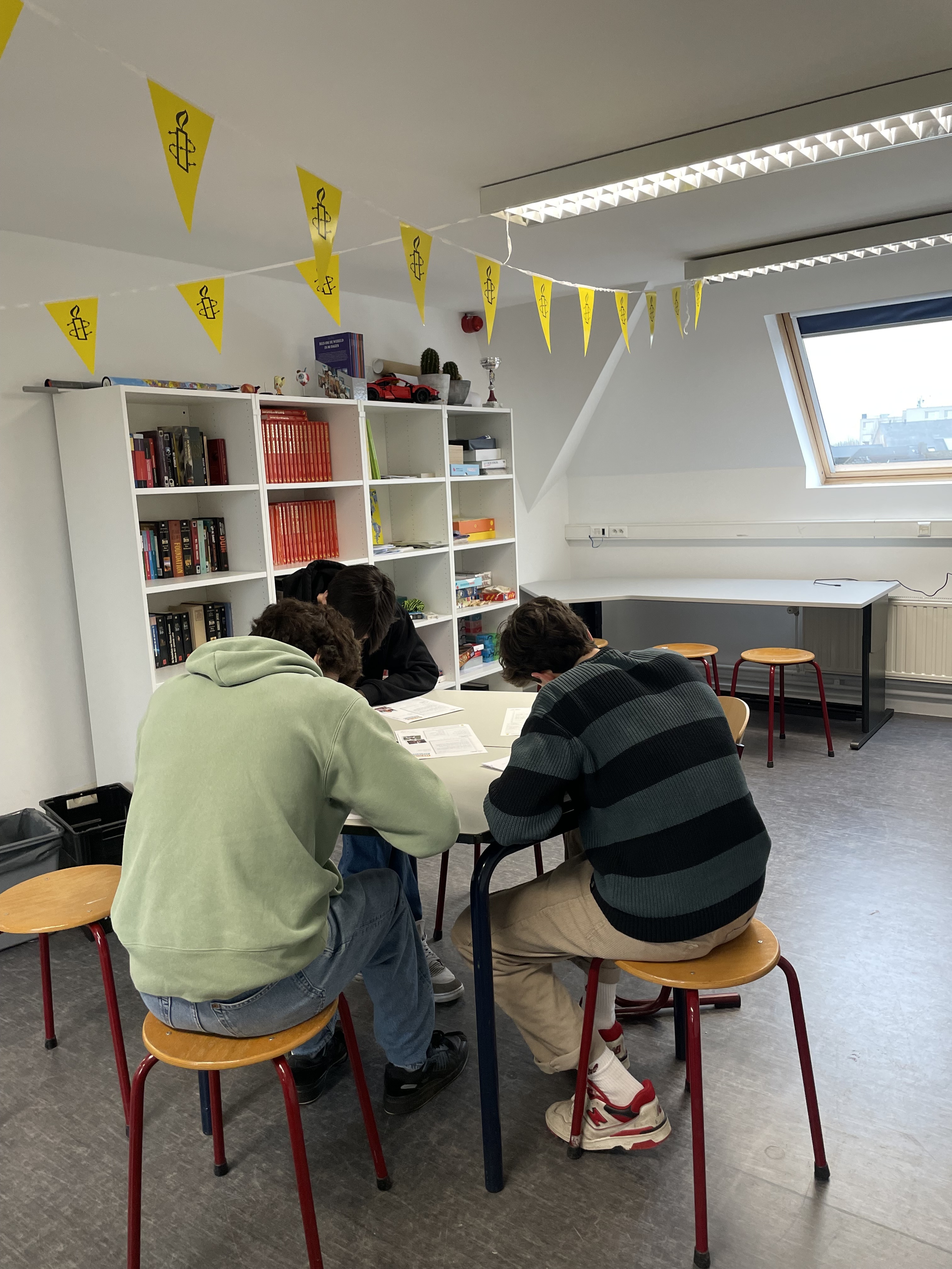 Wereldwijd worden personen onterecht gevangengezet, bedreigd of mensonwaardig behandeld. Op de Schrijf-ze-VRIJdag komen we voor hen op. Vandaag zullen in België meer dan 100.000 leerlingen brieven schrijven voor mensen die onterecht gevangen zitten of ander onrecht meemaken. Zo ook op Campus Tesse. Er werd een schrijfhoek gemaakt waar een 150 brieven zijn geschreven. Bedankt aan alle leerlingen en leerkrachten die kiezen voor een rechtvaardige wereld.
